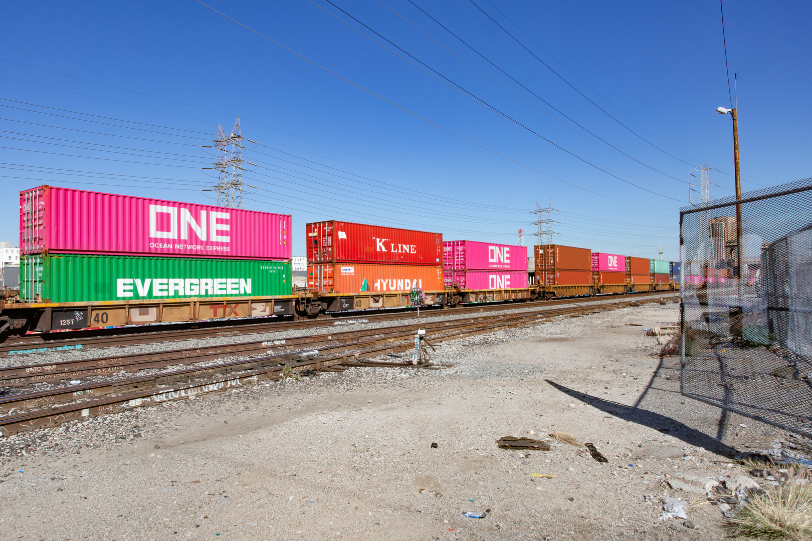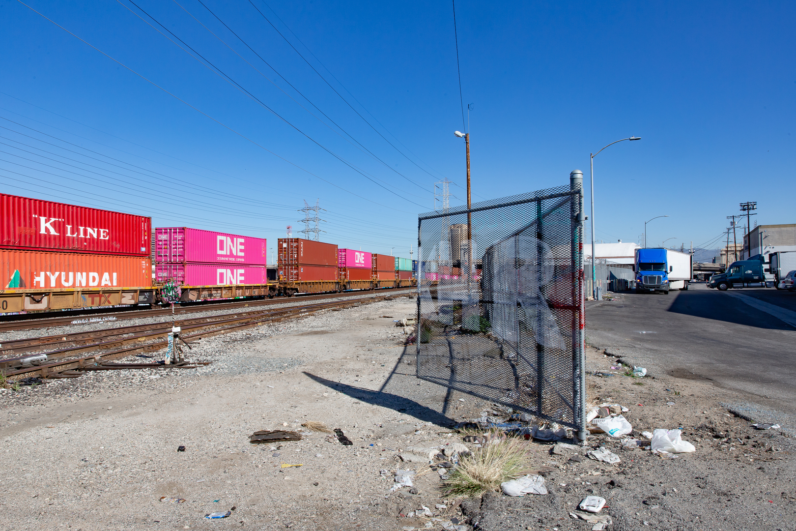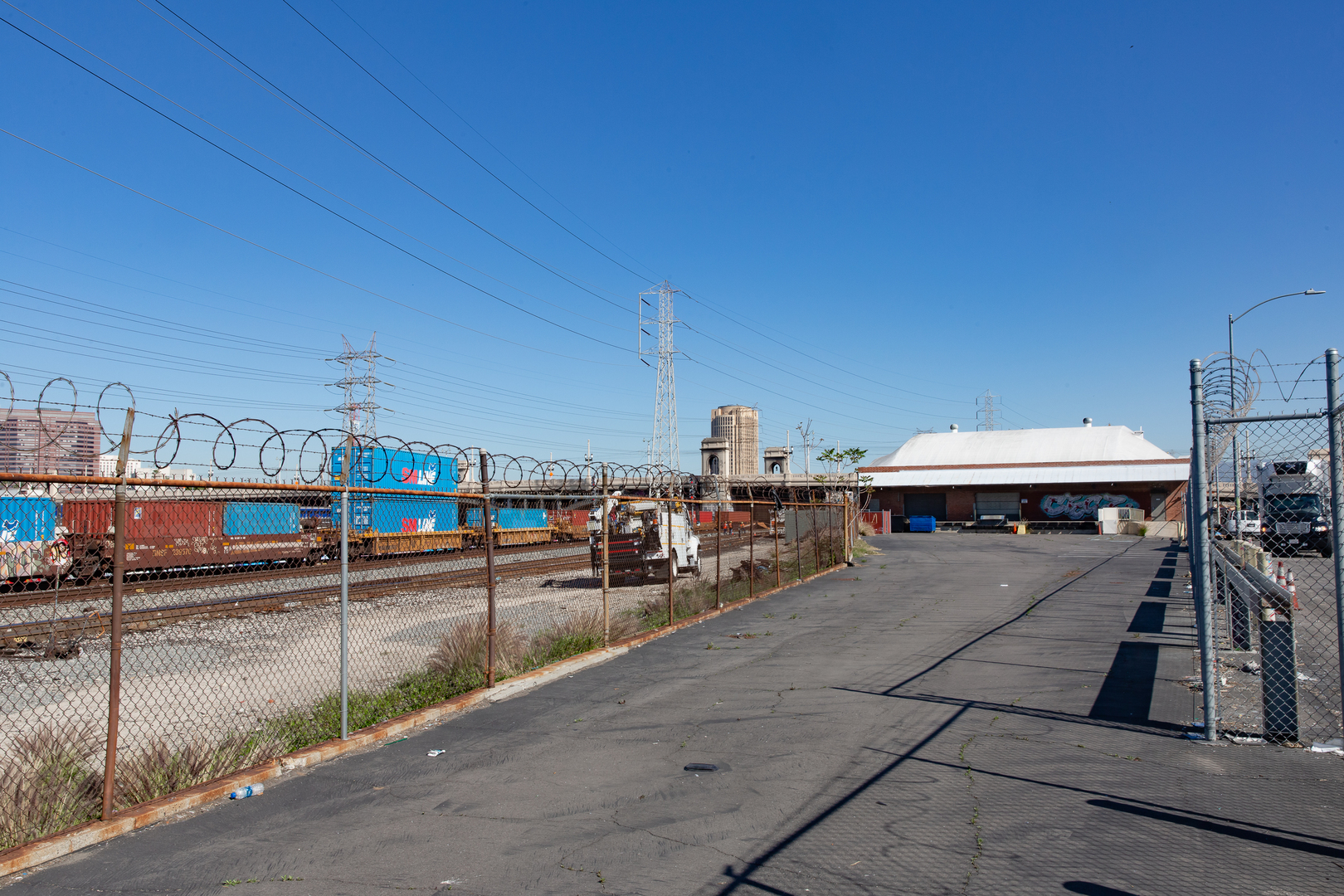 - Views of Downtown LA, the railroad tracks, and the 1st Street Bridge