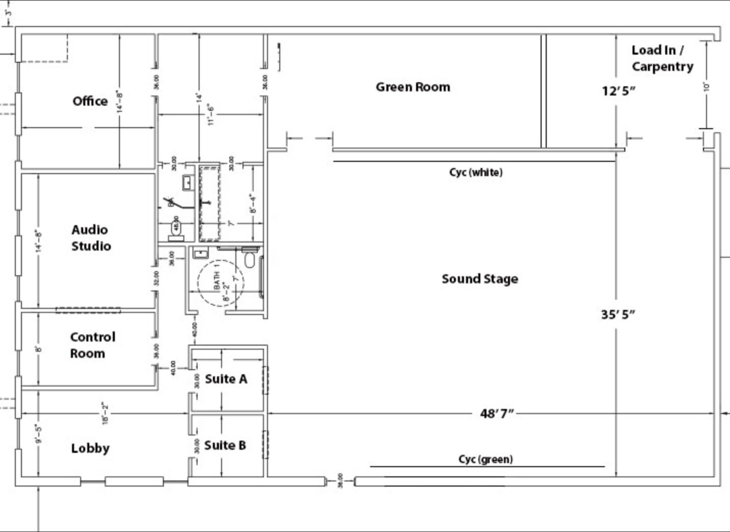 - Large 1900 sq ft soundstage or smaller 12’x50’ staging area.